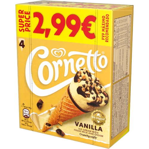 GELADO CORNETTO BAUNILHA SUPER PRICE 4X90ML