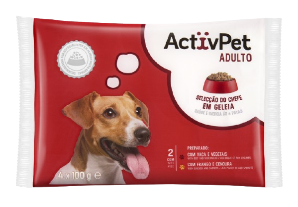 ALIMENTO HÚMIDO CÃO ADULTO GELEIA ACTIVPET 4X100GR