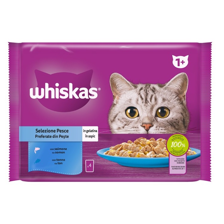 ALIMENTO HÚMIDO P/ GATO WHISKAS SELEÇÃO DE PEIXE 4X85GR
