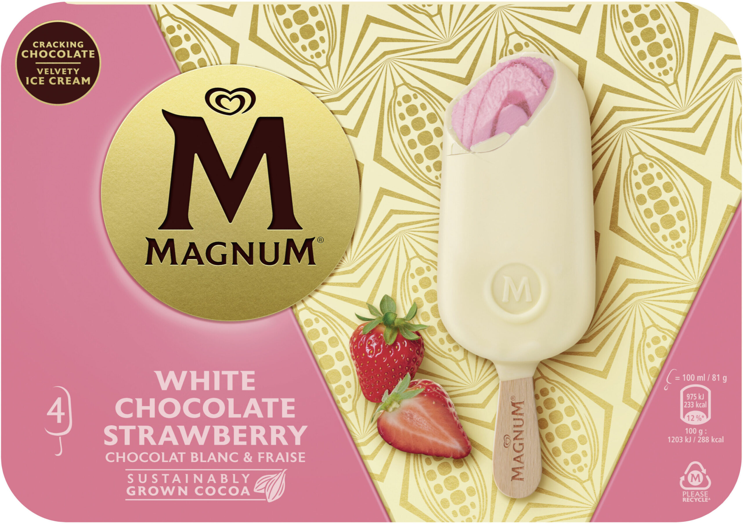 GELADO MAGNUM CHOCOLATE BRANCO E MORANGO 4X100ML
