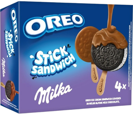 GELADO SANDWICH STICK OREO MILKA 4X75ML